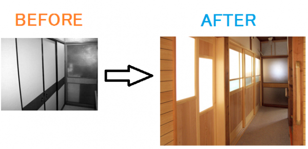 廊下が暗いため襖からアクリル板入り建具に。