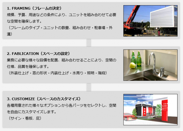 キューブスタイルでは、人々の暮らしや仕事の空間をコンパクトにまとめた建築空間の提供を様々な角度から検証し、組立や移設に適したキューブ型の構造を必要な数だけ提供し、増設や切り離しを容易にしながら、機能性とデザイン性を両立させたユニットハウスを提供します。