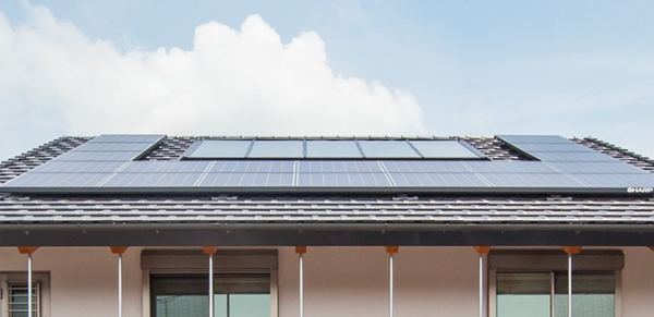 ハイブリッドソーラーハウスは、太陽熱を吸収するための太陽熱コレクターを屋根の上に設置します。太陽光発電のパネルのように屋根の仕上げの上に置くのではなく、屋根を葺く前に屋根下地に直接取り付ける屋根一体型太陽熱集熱器を使います。