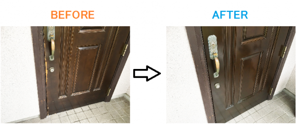 木製玄関扉のキズ・塗装剥がれの補修