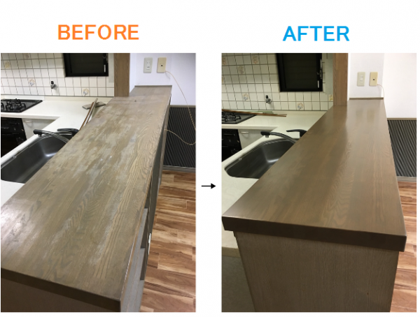 木製キッチンカウンター再塗装