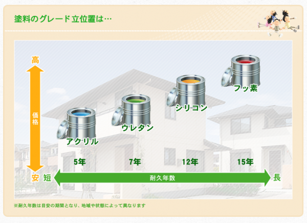 アクリルよりも防汚性・耐久性に優れている一方で、シリコン・フッ素よりもリーズナブルで機能性と価格のバランスがとれています。